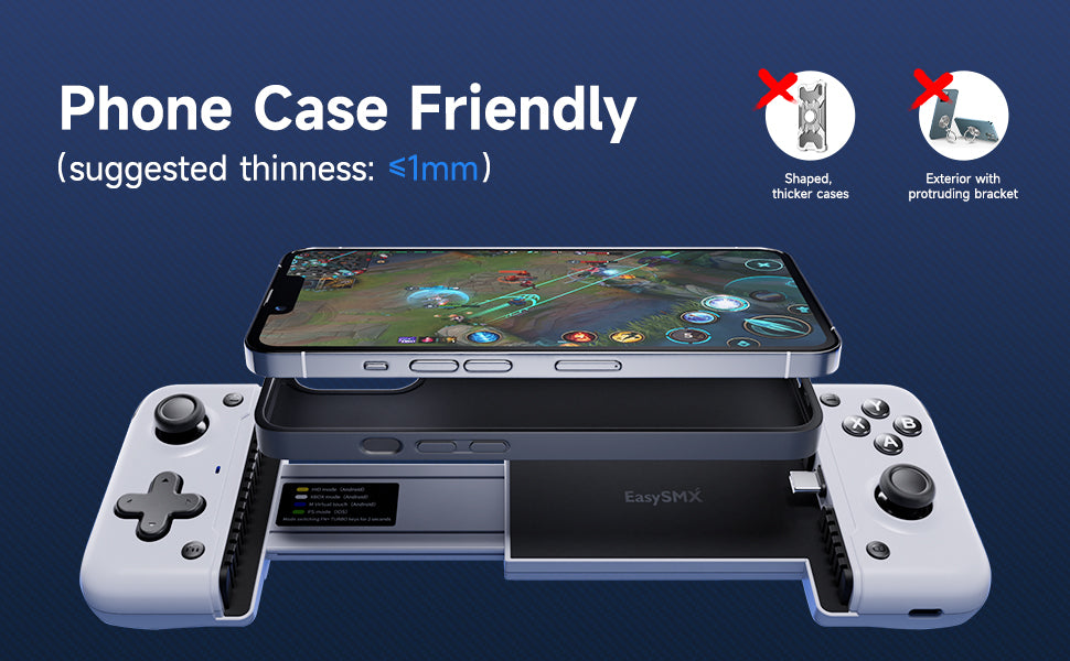 The EasySMX M05 boasts an adjustable size that stretches from 100-173 mm, accommodating a wide range of smartphones, including those with camera bumps and cases (up to 1mm thick). Its moveable plug and optimized structure allow for effortless attachment to any compatible phone, ensuring a seamless gaming experience.