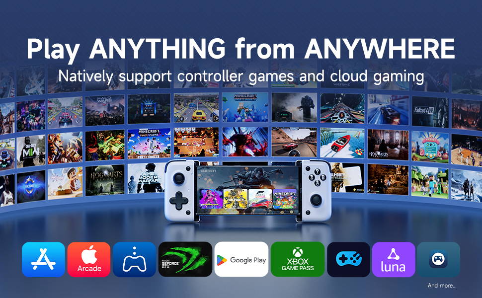 Compatible with both Android and iPhone (series 15 or later with USB-C plug), the M05 offers both Bluetooth and direct USB-C connections. It supports a variety of gaming platforms, including Xbox Game Pass, PlayStation Remote, and GeForce NOW, ensuring a limitless gaming experience.