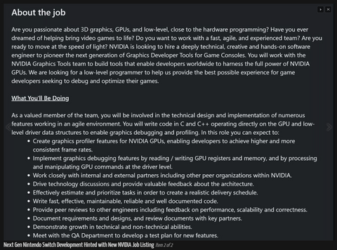 The job listing originates from the Nintendo European Research & Development (NERD) team in Paris, France, seeking an engineer with game development experience. While most of the content adheres to standard templates, the "Responsibilities" section offers tantalizing insights into the next-generation Switch. The listing highlights the need for someone capable of "exploring, defining, and implementing software solutions" and explicitly references "high-performance implementation," hinting at a substantial leap forward in power. These claims align with prior reports suggesting that Nvidia's cutting-edge technology will feature in the next iteration of Nintendo's gaming console.
